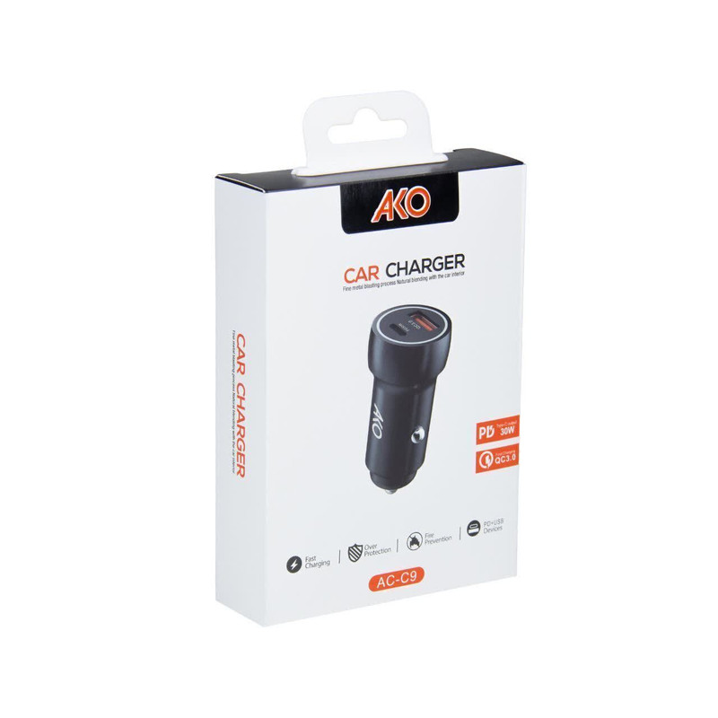 شارژر فندکی 30 وات دو پورت آکو مدل AC-C9